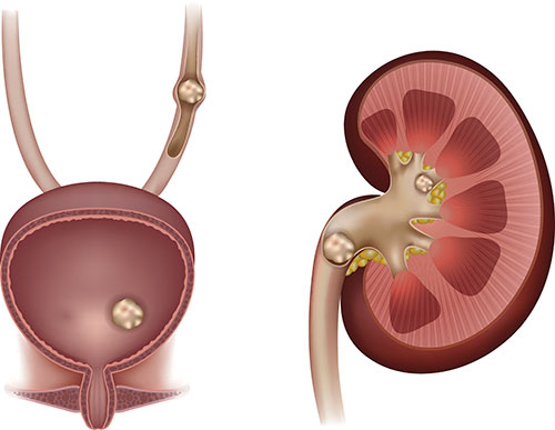 Los cálculos de calcio son los más comunes, aunque también pueden tener como material mayoritario cistina, estruvita y ácido úrico. El dolor y la presencia de sangre en la orina son algunos de los síntomas usuales, pero también pueden presentarse náuseas, vómitos y otros signos. Los cálculos más pequeños casi siempre pasan a través del tracto urinario por sí solos, pero en casos más avanzados puede ser necesaria la administración de ciertos fármacos para ayudar a su descomposición e, incluso, una intervención quirúrgica.